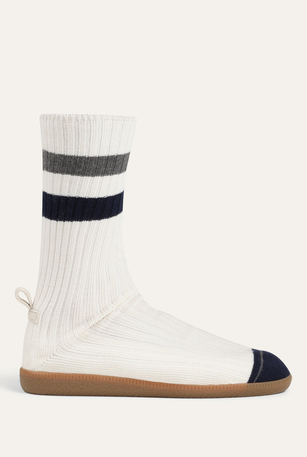 A reimagining of a classic. A nod to old-school trainers, modernized. Inspired by vintage locker room stripes and the collegiate energy of retro gym class. It looks like a sock, but performs like a shoe.