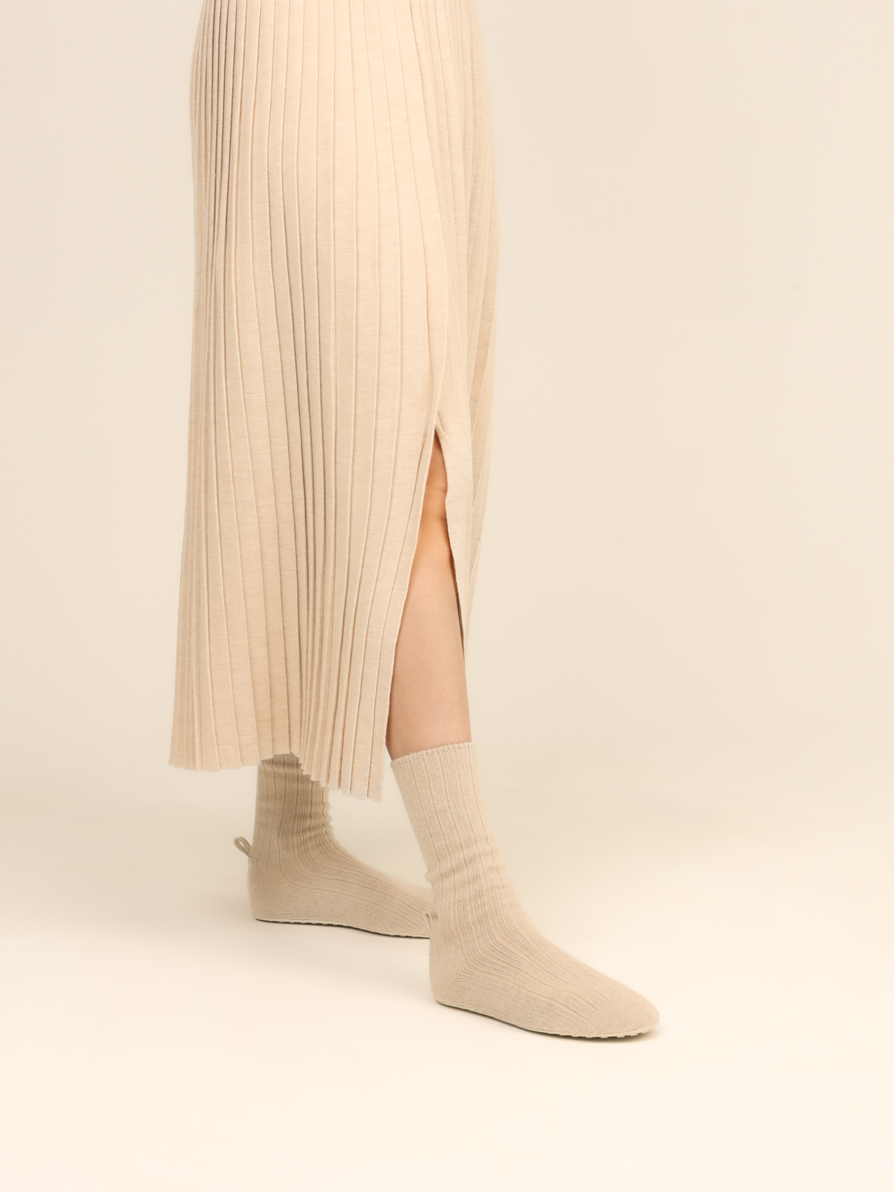 Made with premium recycled cashmere and a cushioned insole. Refined simplicity and elegance, combined with unparalleled comfort.