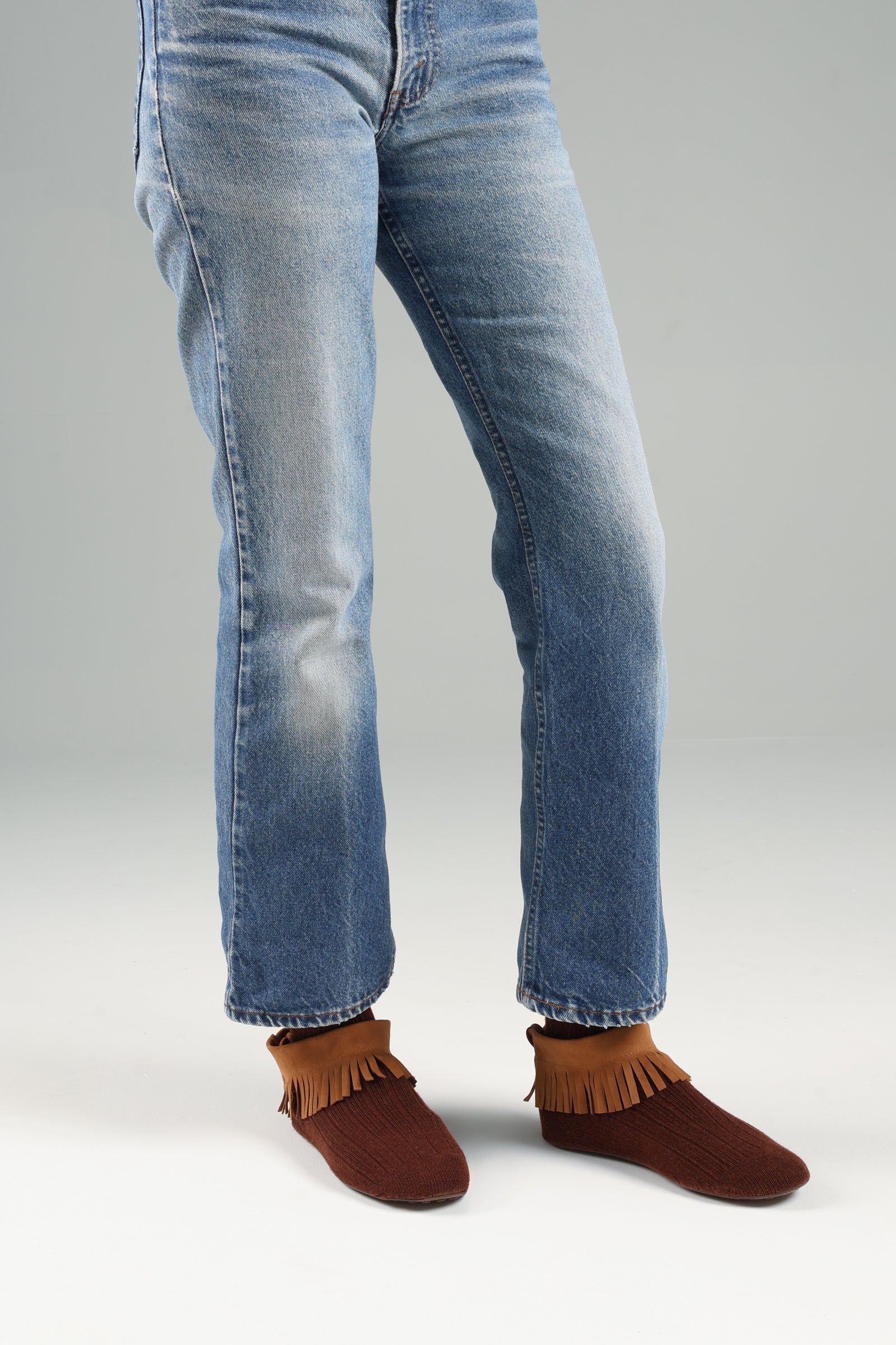 One-of-a-kind anklet accessories, handcrafted from carefully sourced deadstock materials. Each pair gives new life to otherwise unused hides, with hand-cut fringe, making every piece inherently unique.