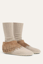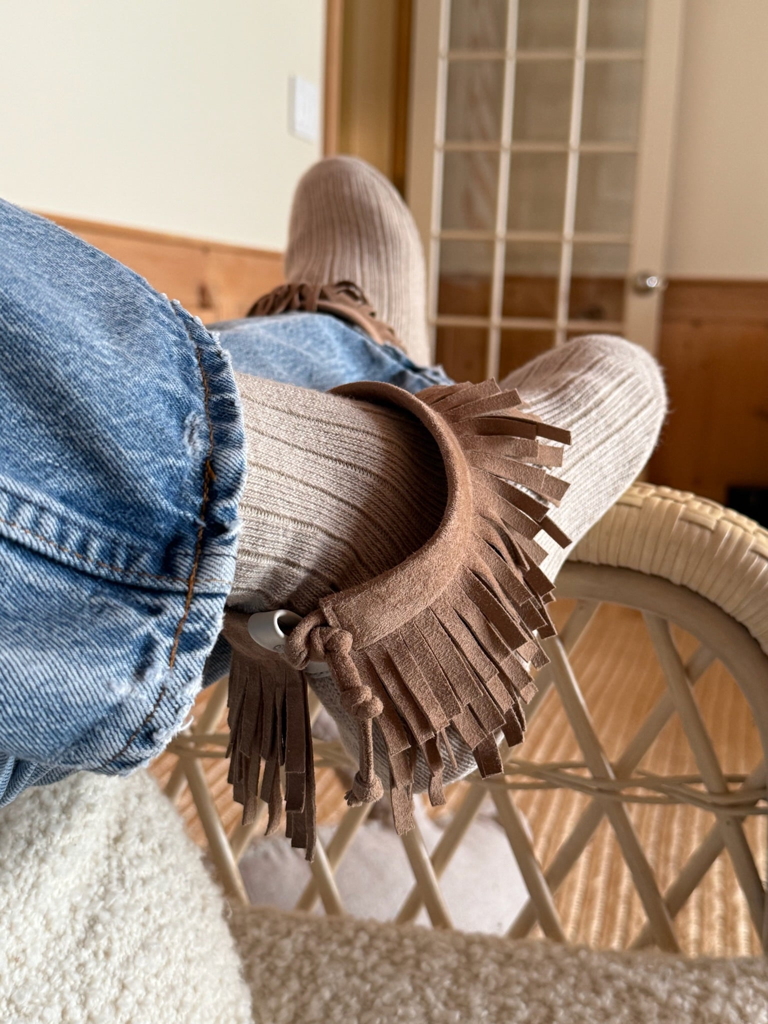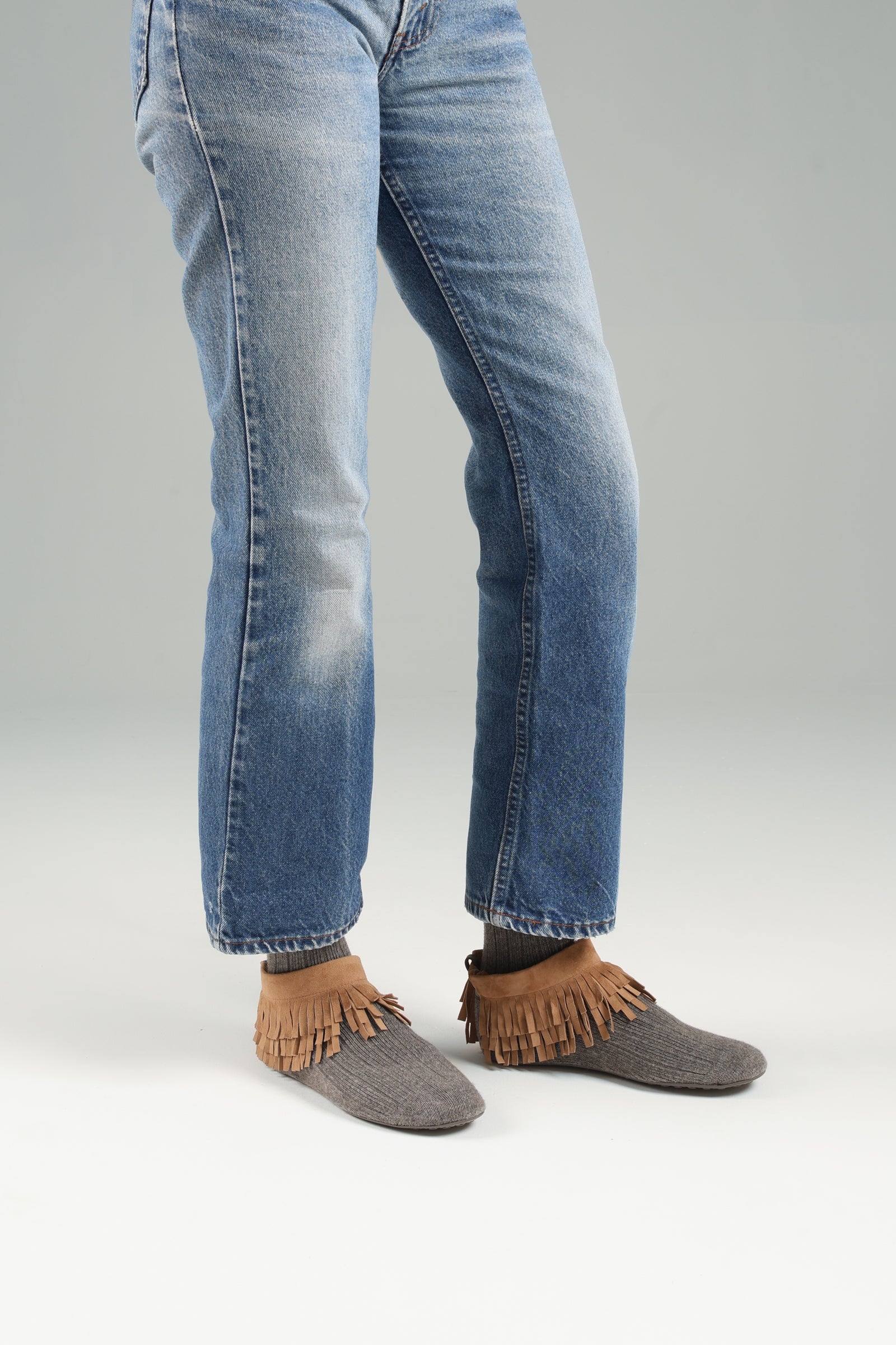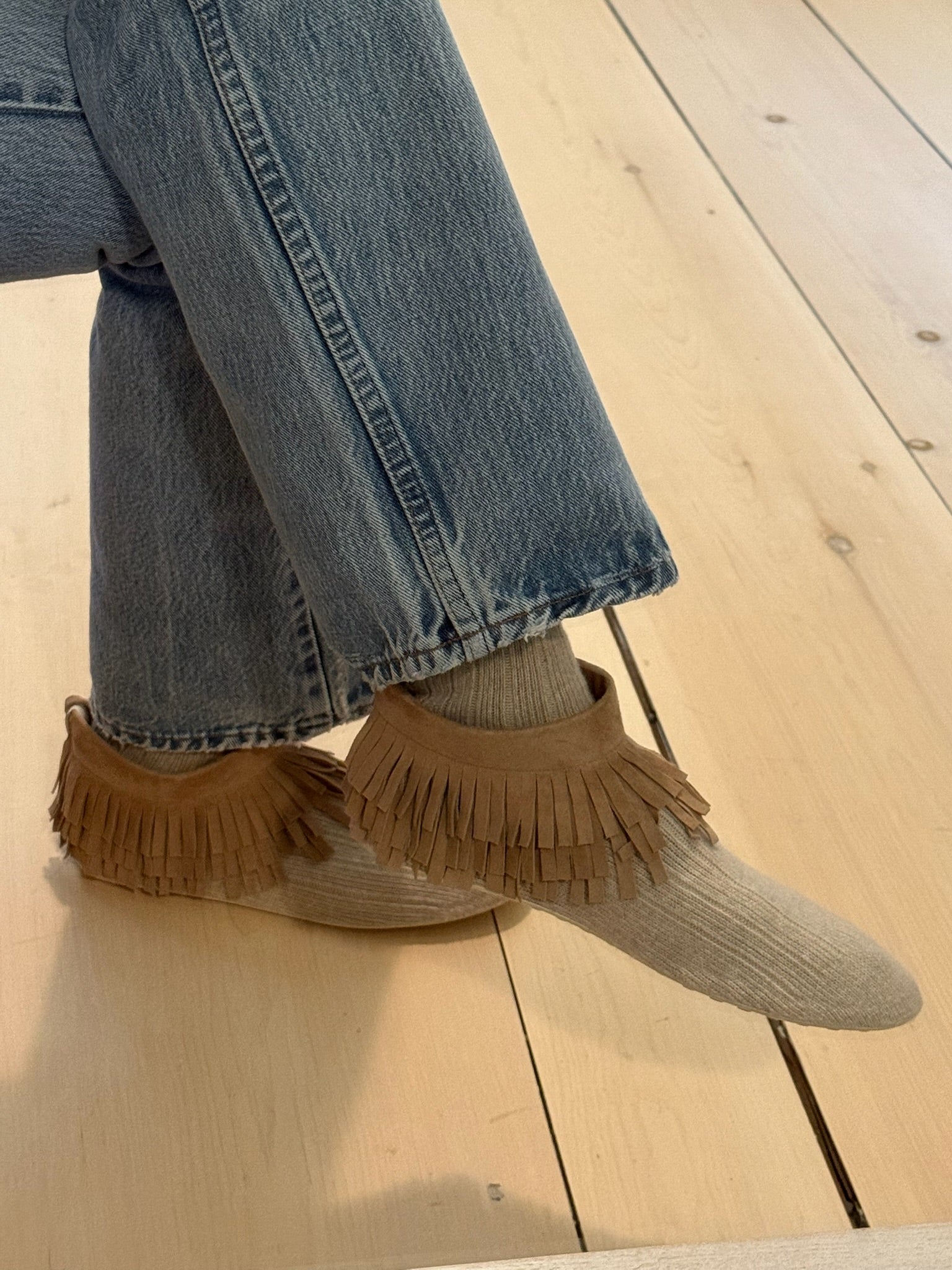 One-of-a-kind anklet accessories, handcrafted from carefully sourced deadstock materials. Each pair gives new life to otherwise unused hides, with three layers of hand-cut fringe, making every piece inherently unique.