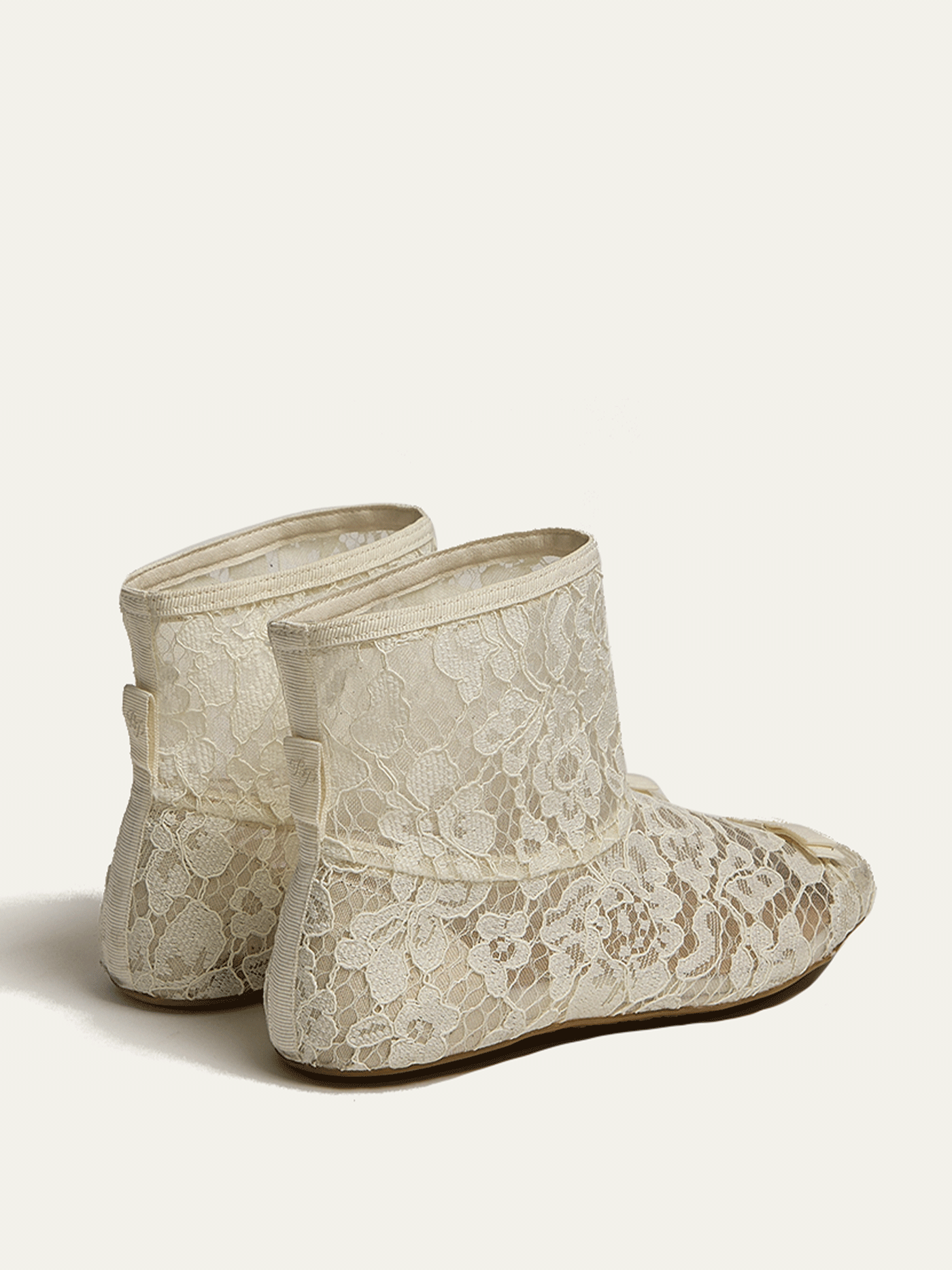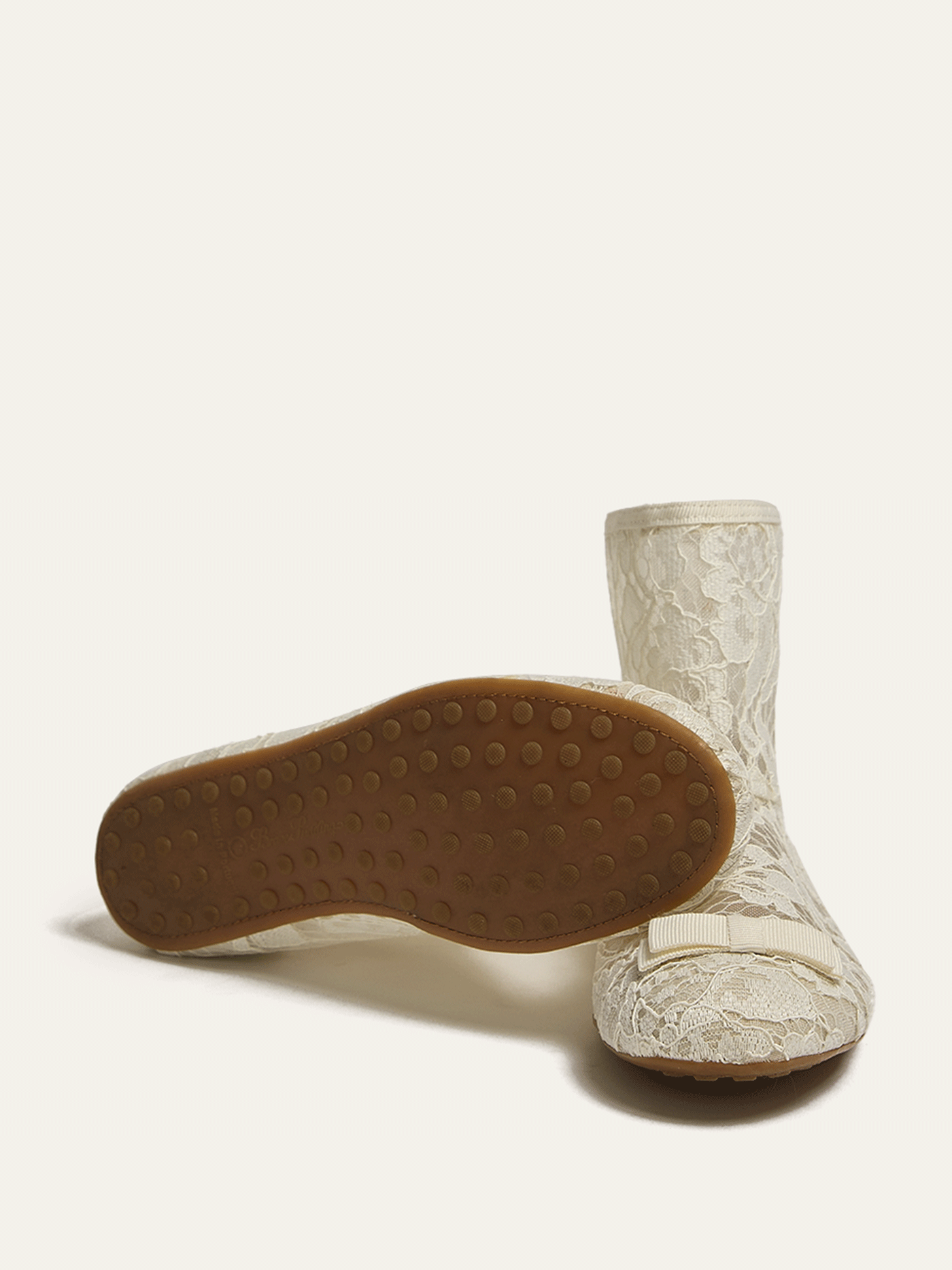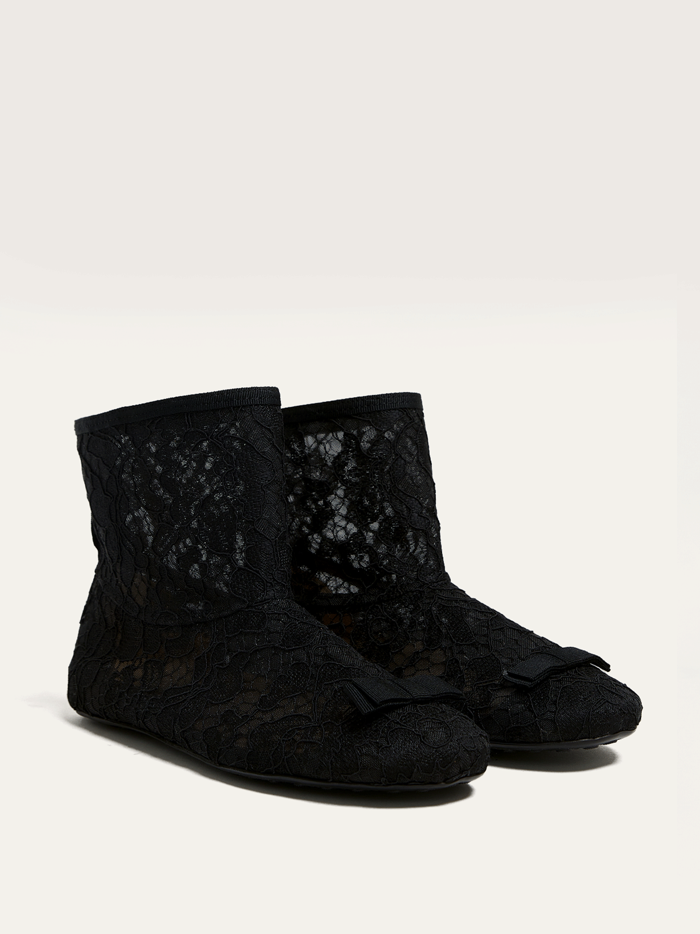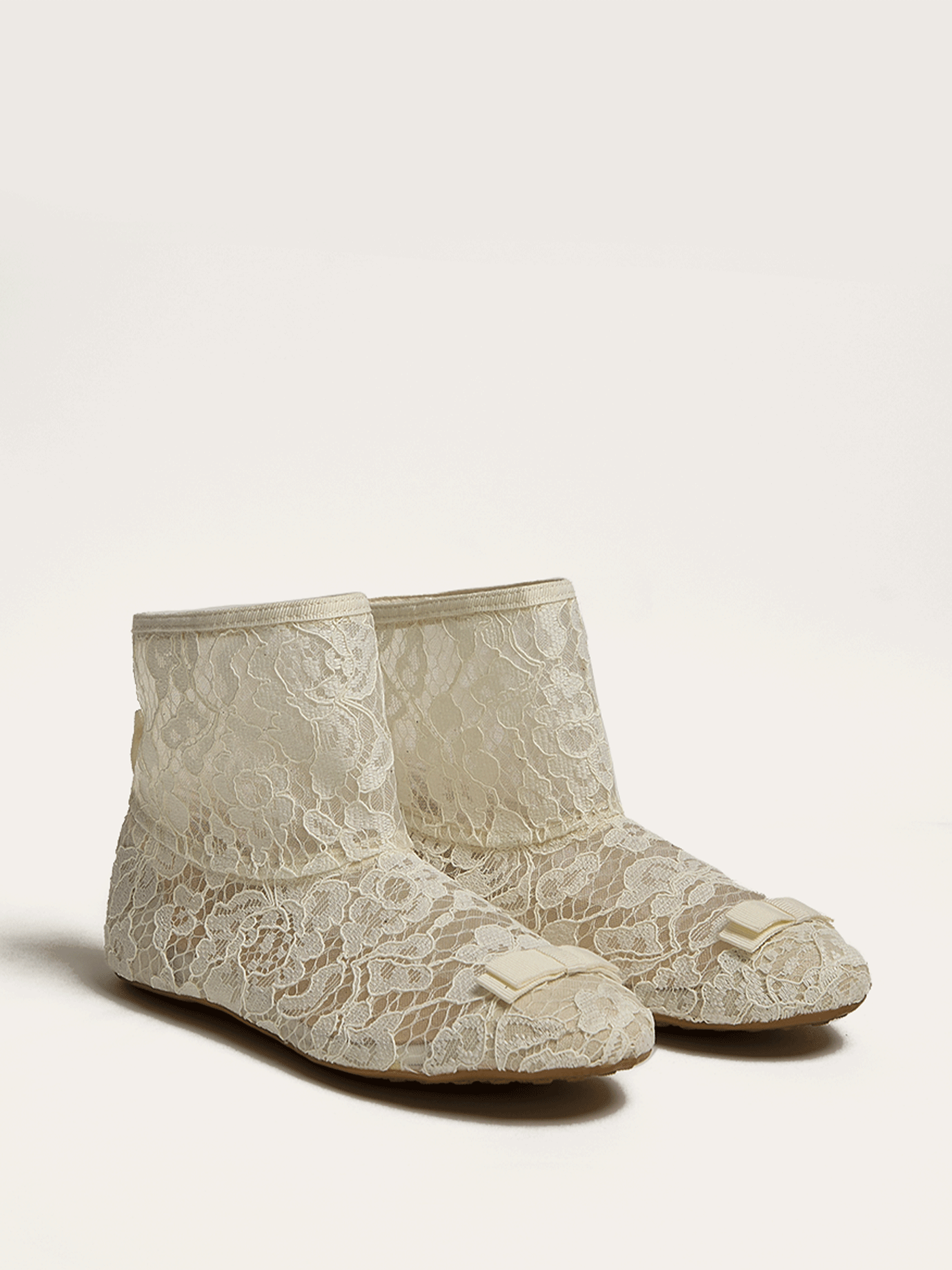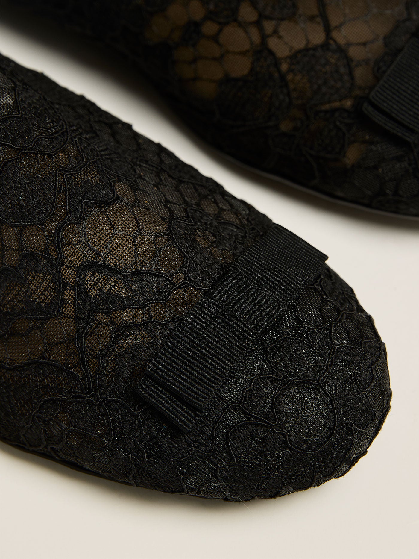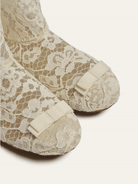 The lace sock, reimagined as a shoe with a structured grosgrain bow inspired by military regalia.